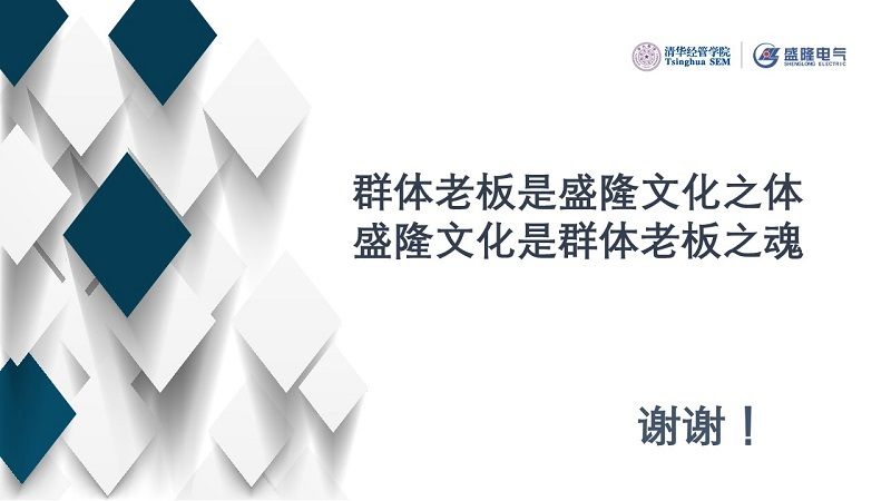 盛隆的群體老板案例,是由清華經(jīng)管學(xué)院市場(chǎng)營(yíng)銷系宋學(xué)寶教授主要開發(fā)的。該案例半年前已經(jīng)納入我們的案例庫(kù)。稍后請(qǐng)謝董事長(zhǎng)為我們介紹,之后有一個(gè)互動(dòng)問(wèn)答環(huán)節(jié),由謝董事長(zhǎng)和宋教授一起與大家互動(dòng)。下面有請(qǐng)謝董事長(zhǎng)為我們講一講盛隆電氣的故事。