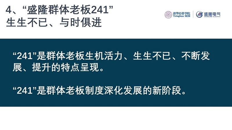 “241”是群體老板生機(jī)活力、生生不已、不斷發(fā)展、提升的特點(diǎn)呈現(xiàn),是群體老板制度深化發(fā)展的新階段。