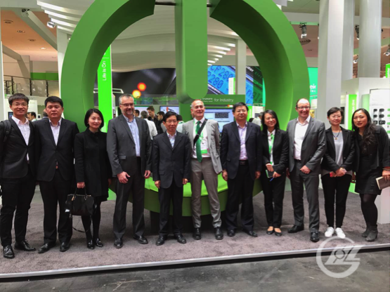 訪問團剛剛達漢諾威施耐德展廳,施耐德負(fù)責(zé)接待的官員就介紹,為了接待大家,我們已經(jīng)收到了近千封工作郵件。施耐德全球營銷副總裁安德魯先生以及商業(yè)伙伴副總裁佩雷格林先生熱情地接待了董事長訪問團。雙方合影留念,并進行會談。