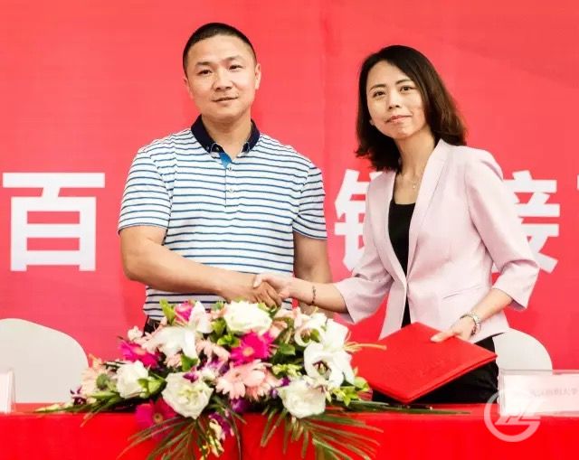 漢紡織大學(xué)校企合作促進(jìn)會(huì)簽約儀式,右一為武漢紡織大學(xué)機(jī)械工程與自動(dòng)化學(xué)院黨委副書記衛(wèi)東妹,左一為盛隆電氣集團(tuán)智慧城市建設(shè)有限公司總經(jīng)理韓文