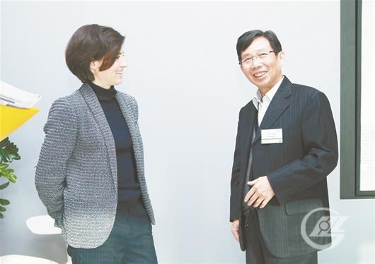 湖北日報訊 圖為盛隆電氣集團董事長謝元德與施耐德法國總裁艾德曼女士在施耐德總部。