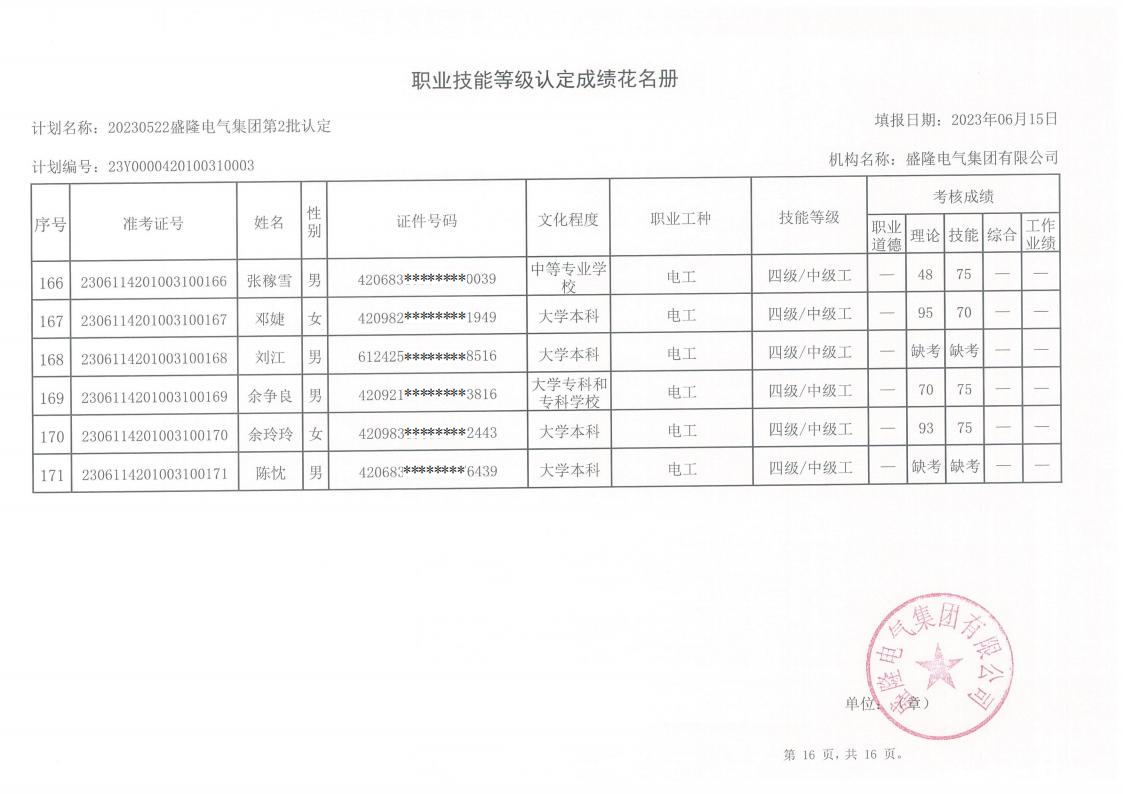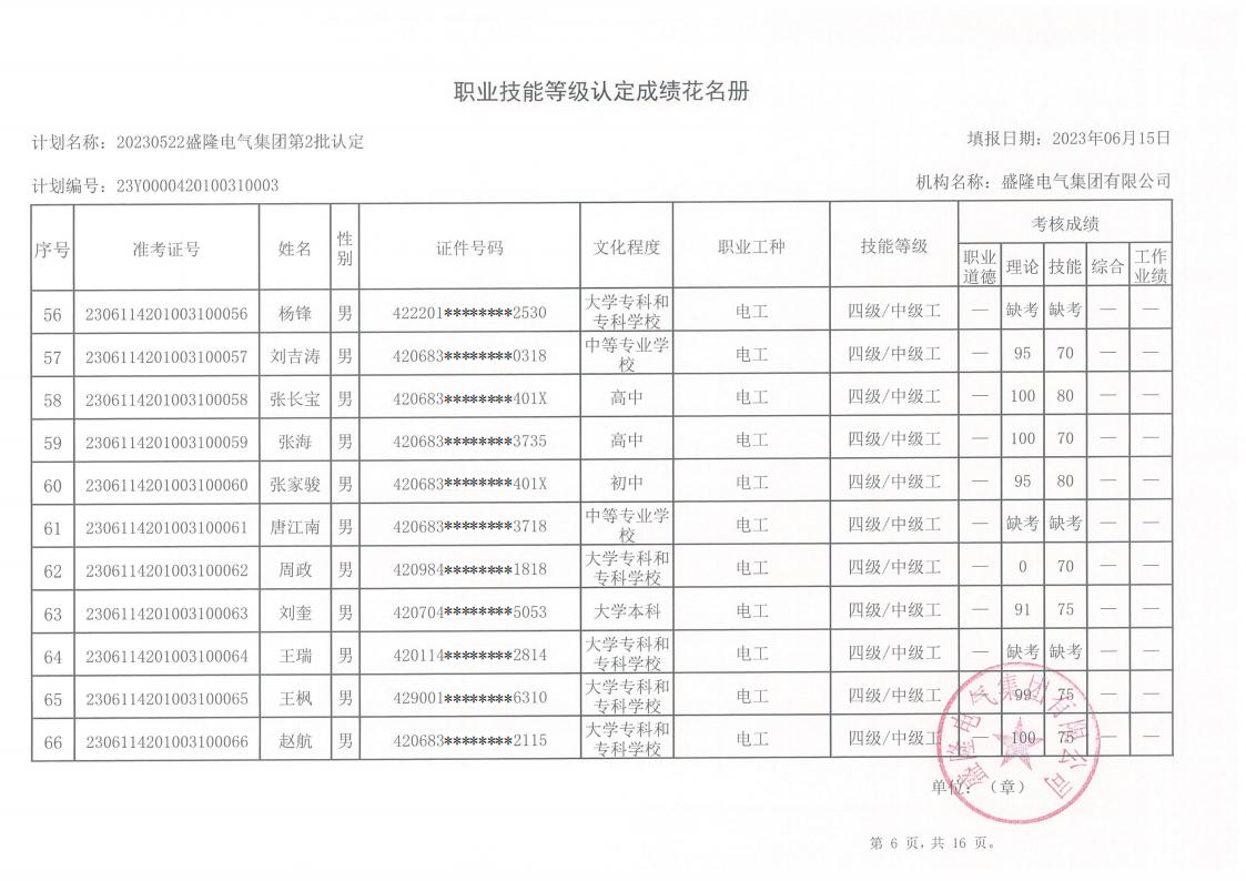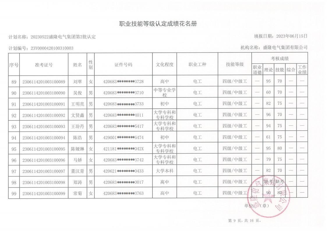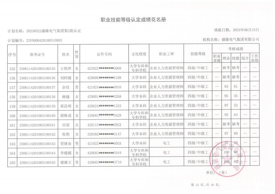 根據湖北省人力資源和社會保障廳《湖北省職業技能等級認定工作實施細則》(【2020】45號)文件的有關規定,現將盛隆電氣集團2023年第四批職業技能等級認定——電工(四級)、企業人力資源管理師(四級)成績予以公示,詳情見附件。