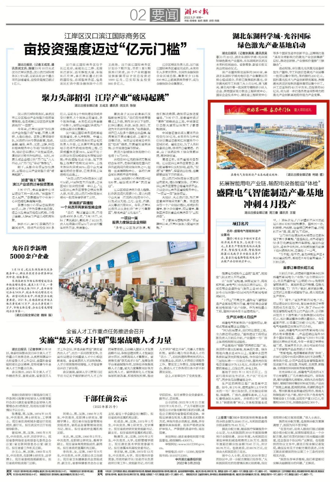 名稱:盛隆電氣智能制造產業基地簡介:項目位于鄂州市葛店經濟技術開發區,總投資13億元,主要生產智能型高低壓成套開關、智能型變壓器、智能型斷路器以及數字多功能儀表等產品,旨在打造盛隆智能用電全產業鏈產品全球供應中心。湖北日報訊(記者周三春)能源電力被稱作工業的“血液”,猶如空氣和水對人不可或缺。讓“血脈”...2022-03-21 -