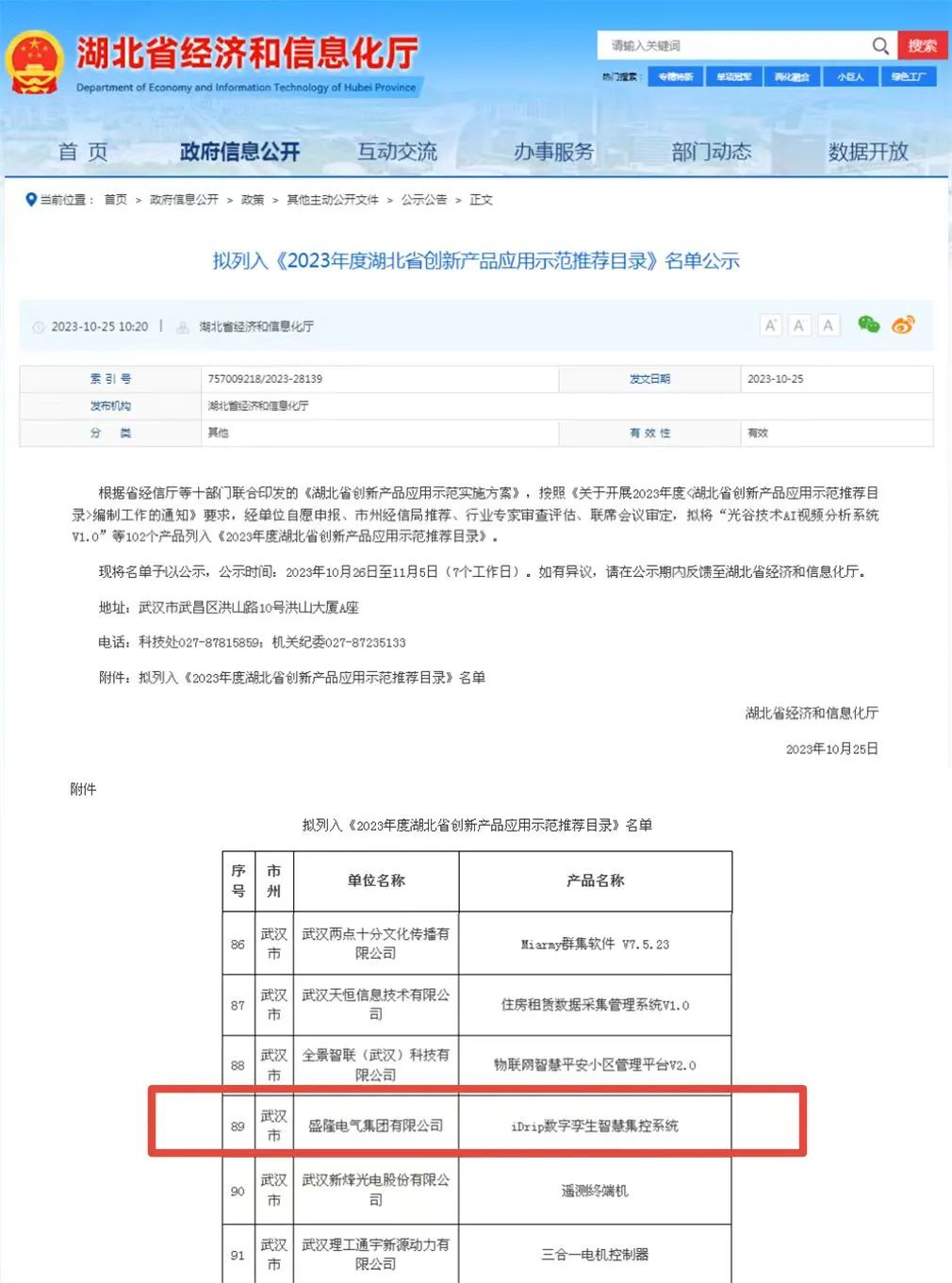 盛隆電氣iDrip系統入選“湖北省創新產品應用示范推薦目錄”
