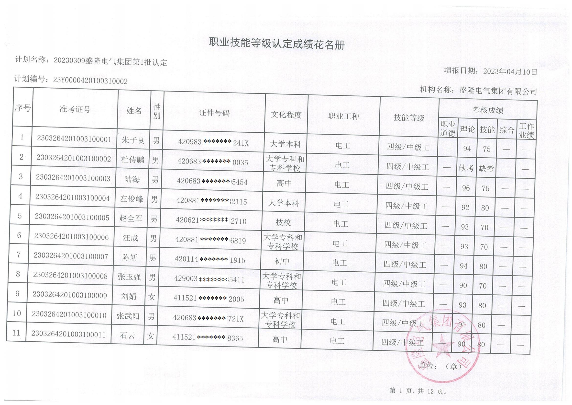 關于盛隆電氣集團2023年第三批職業技能等級認定的公告