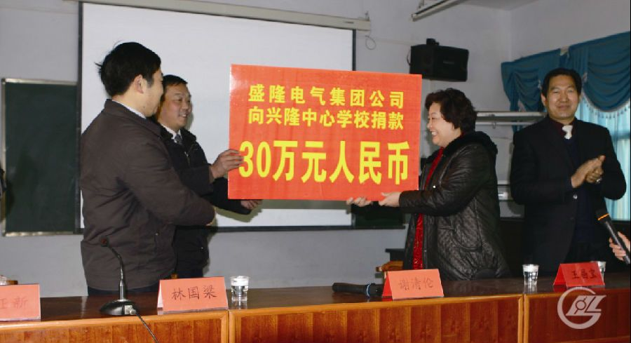 2011年1月30日,盛隆電氣集團有限公司在湖北棗陽興隆鎮舉行捐贈活動儀式,向興隆中心學校和興隆福利院捐款共計40萬元。興隆鎮有關方面負責人出席了捐款儀式。2011-01-31 -